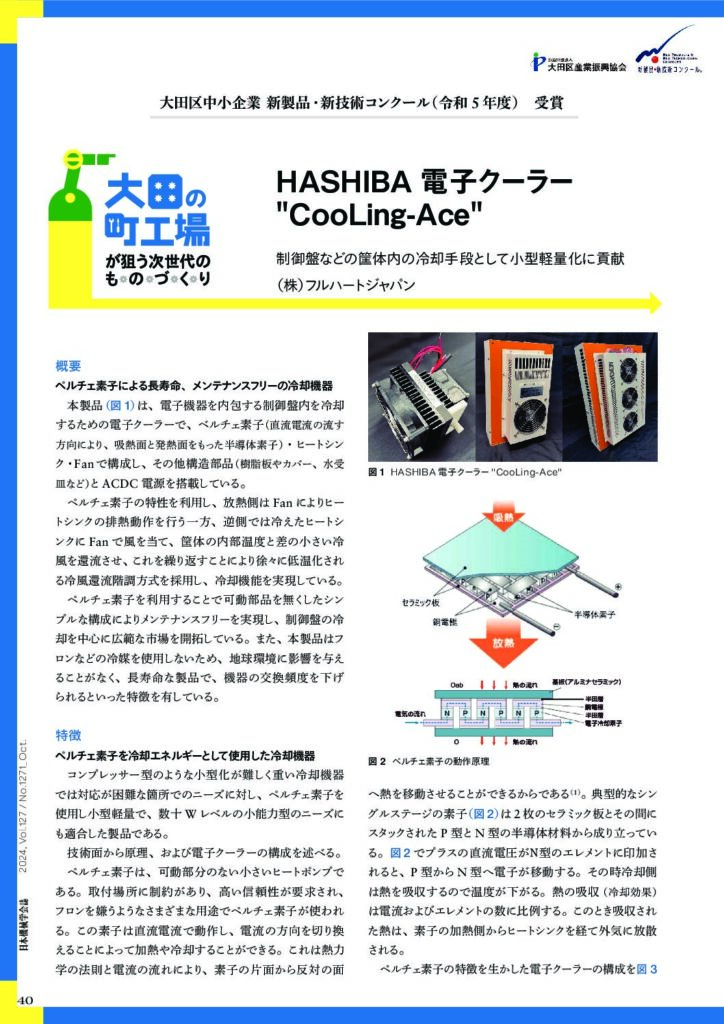 OTAサステナブル賞を受賞させて頂いた HASHIBA電子クーラー”CooLing-Ace”の記事が、