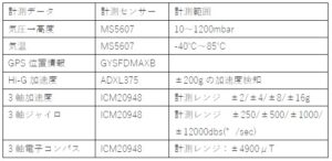 | 気圧情報を地上局へ無線送信し、気圧より高度を換算し、飛行高度を検証する。 |